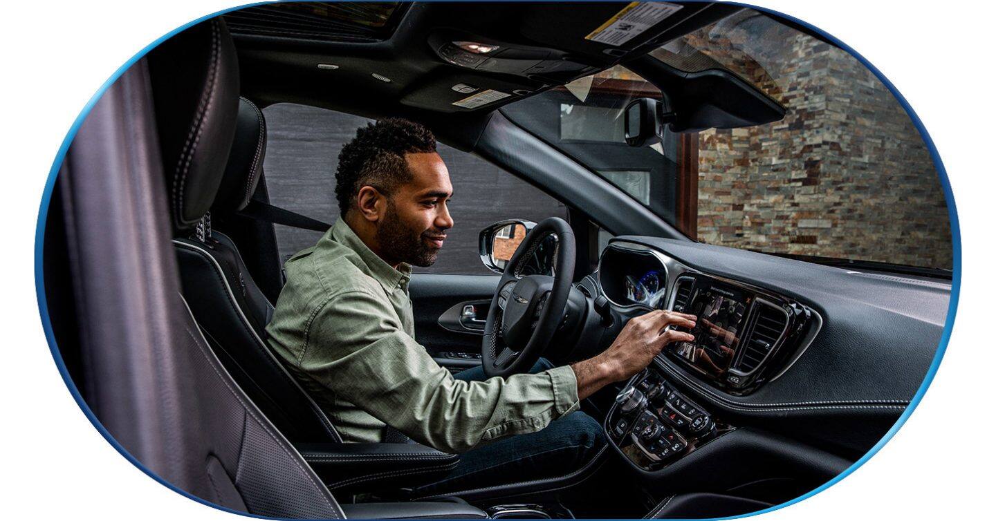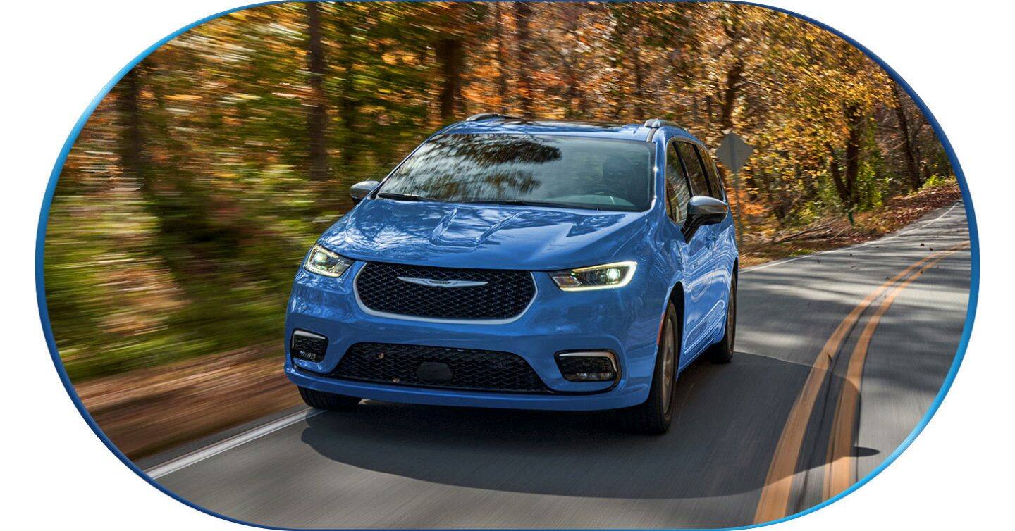 Los sensores ayudan a mantener una distancia preestablecida entre tu minivan Chrysler Pacifica Híbrida Enchufable y el vehículo que va delante cuando circulas entre 0 mph y cruise control en carretera.
